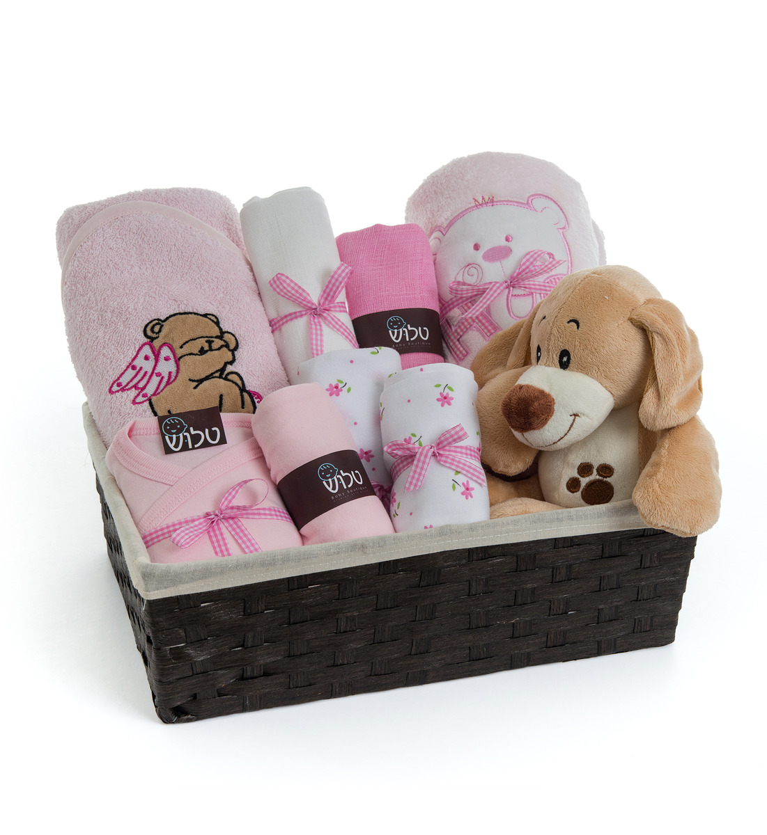סלסלה מעוצבת (הסלסלה בצילום להמחשה בלבד, ייתכנו שינויים) המתאימה לשלל שימושים, ובתוכה מבחר פריטים לנסיכה החדשה!